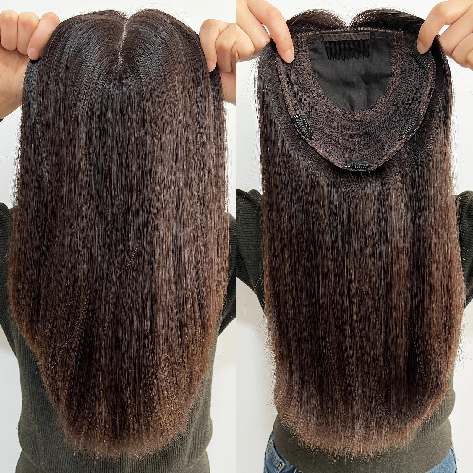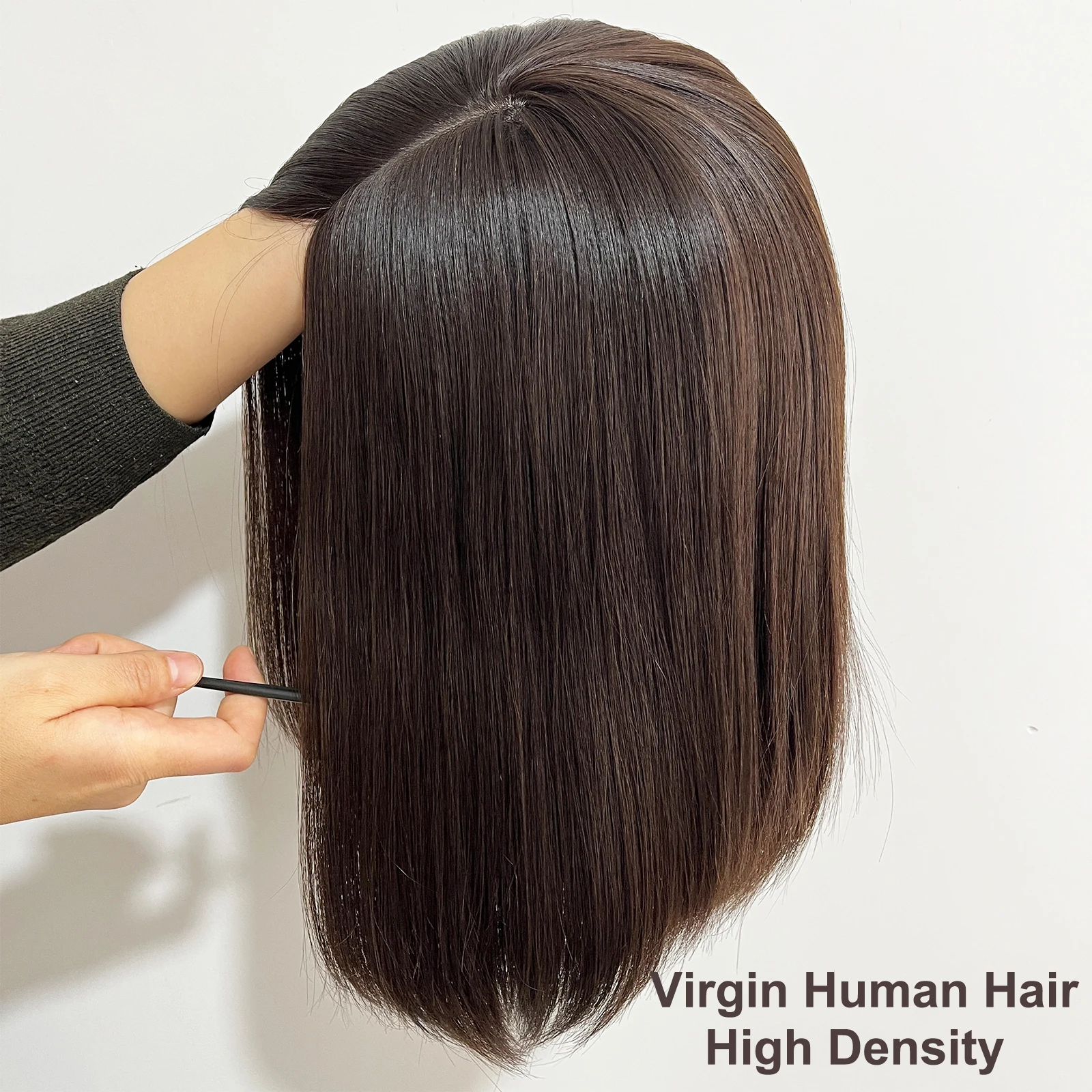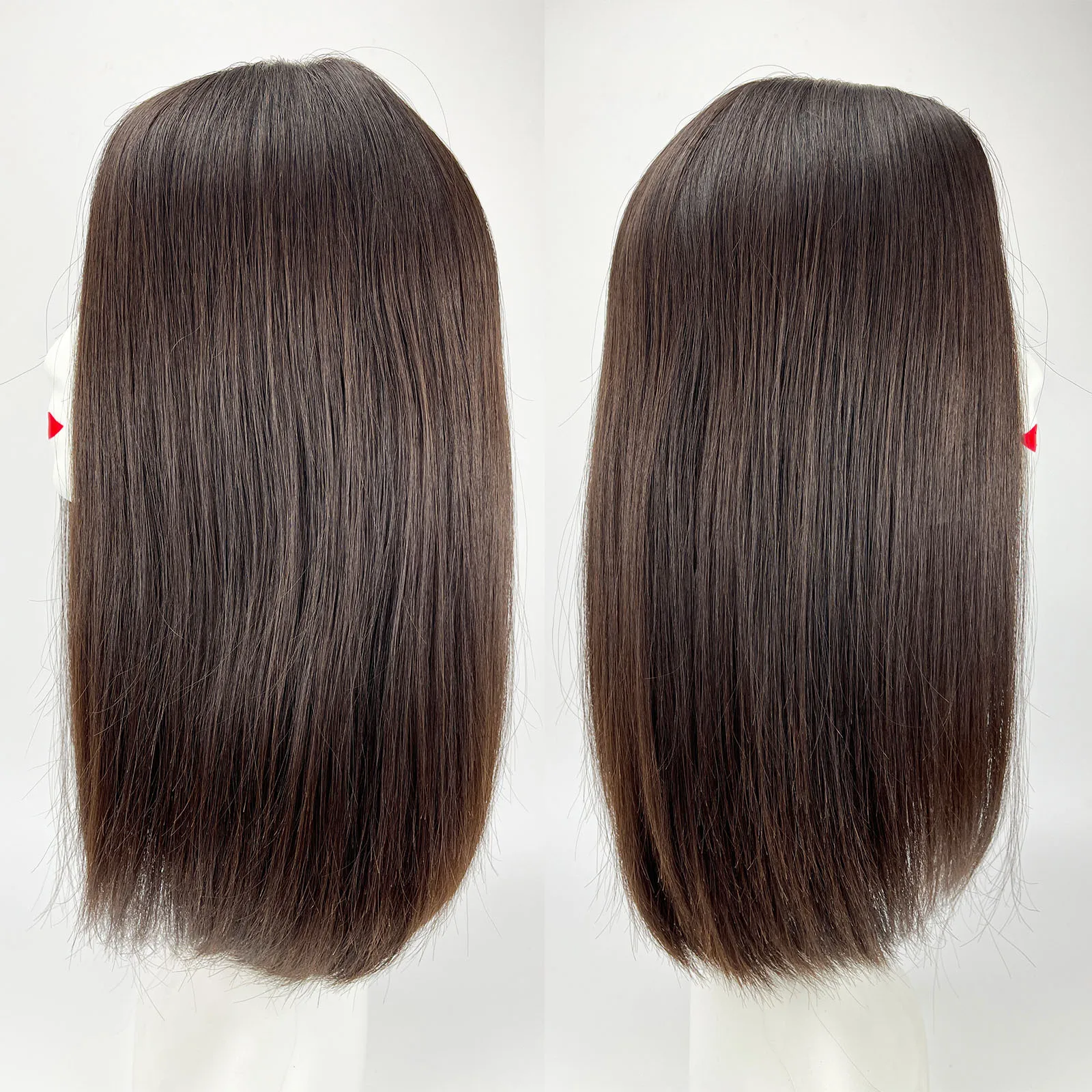 Elevate your style with our Dark Brown Jewish Topper, crafted from real virgin European human hair. This kosher sheitel offers a natural look and feel, perfect for white women seeking elegance and versatility.
