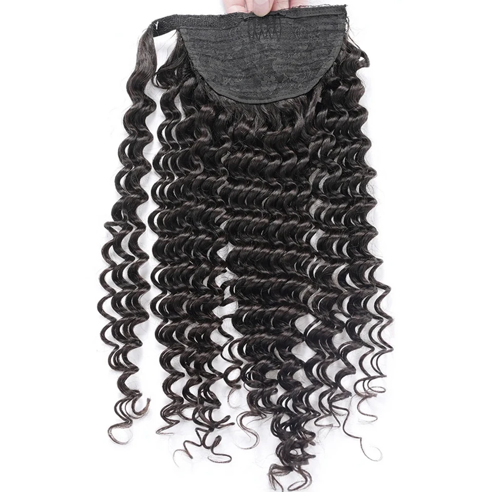 Elevate your hairstyle effortlessly with the Deep Wave Wrap Around Ponytail. This luxurious human hair extension brings natural beauty and volume to your look, perfect for any occasion.