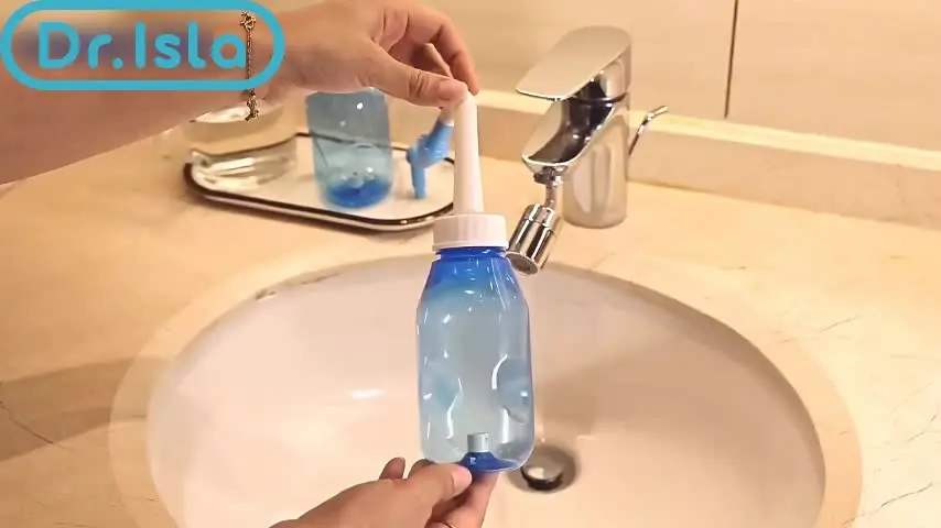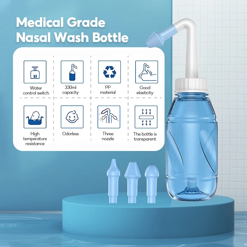 This nasal rinse bottle helps clear allergens and pollutants from the nasal passages, reducing the risk of allergic rhinitis. For optimal results, use with recommended saline solution.