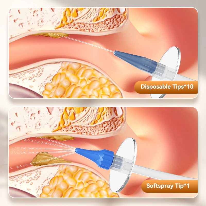 Say goodbye to expensive clinic visits! This ear cleaner kit saves you money and time, allowing for convenient ear cleaning at home. Ideal for all ages, it includes 10 disposable tips for a sanitary experience.