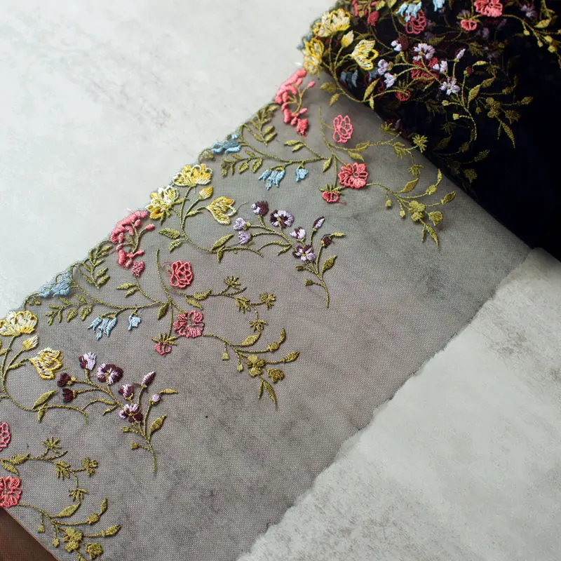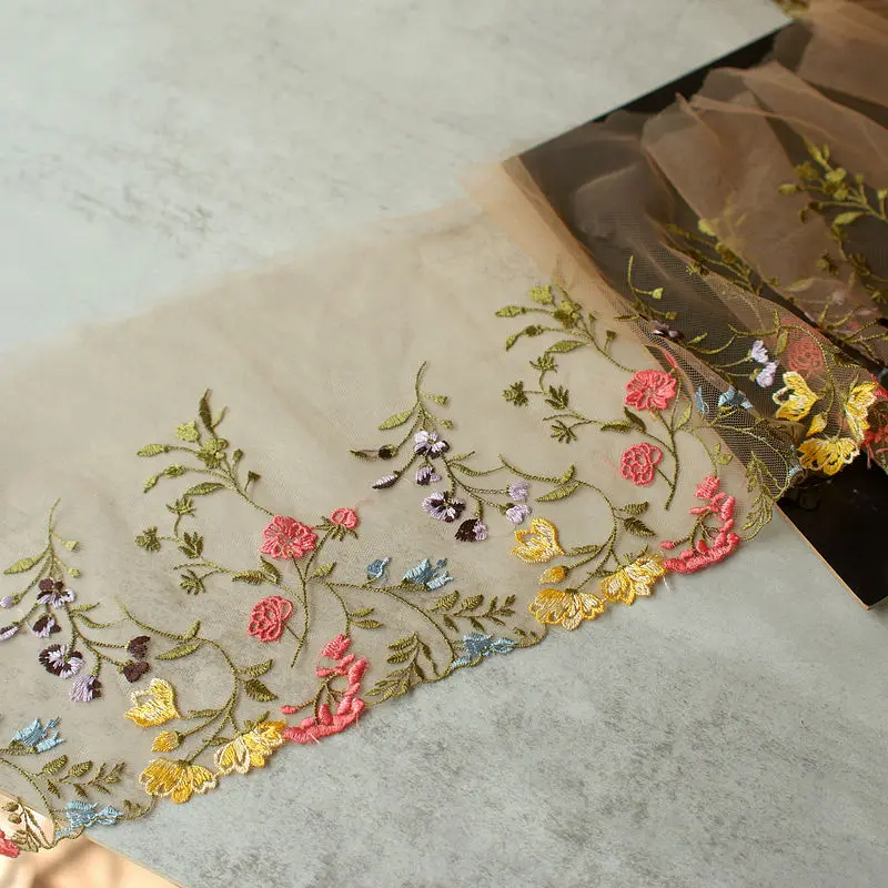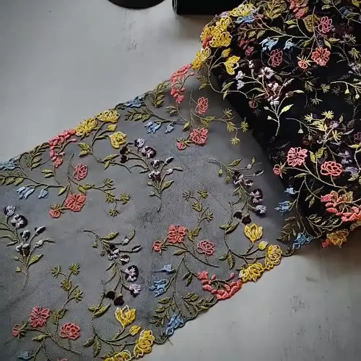This versatile lace is perfect for enhancing garments, accessories, and home decor, bringing vibrant colors and intricate floral designs to life. Its high-quality, embroidered finish ensures durability, making it an excellent choice for both casual and special occasions.