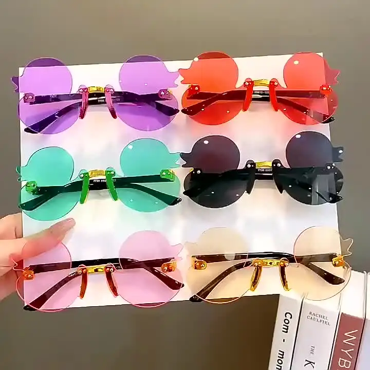 Make your child's sunny days brighter with our Fashion Children's Sunglass Rimless Cartoon Duck Shape Sunshade. Perfect for outdoor adventures or playful parties, these sunglasses offer both style and protection.