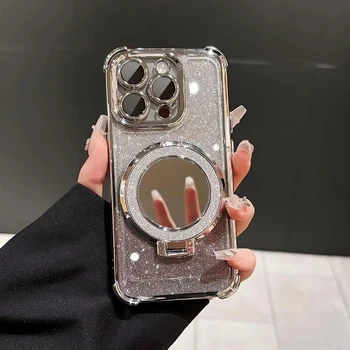 | Model 1 | For iPhone 11 12 13 14 15 16 Luxury Plating Frame Flash Mirror Stand Holder Phone Case |