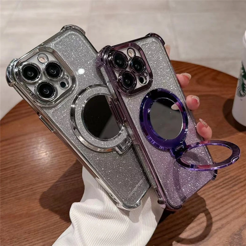 | Feature | Luxury Luxury Plating Frame Flash Mirror Stand Holder Glitter Phone Cover |