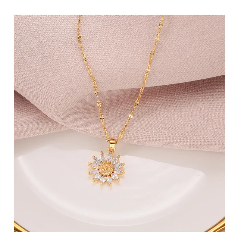 Elevate your jewelry collection with the stunning Gold Plated Sunflower Necklace. This exquisite piece combines elegance and trendiness, perfect for any occasion.