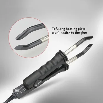 Experience the precision of adjustable heating that caters to various adhesive melting points, making your hair extension applications seamless and efficient. Whether you're a professional stylist or a DIY enthusiast, this iron enhances your styling routine. Crafted from durable ABS material, it combines functionality with sleek aesthetics in black and pink.