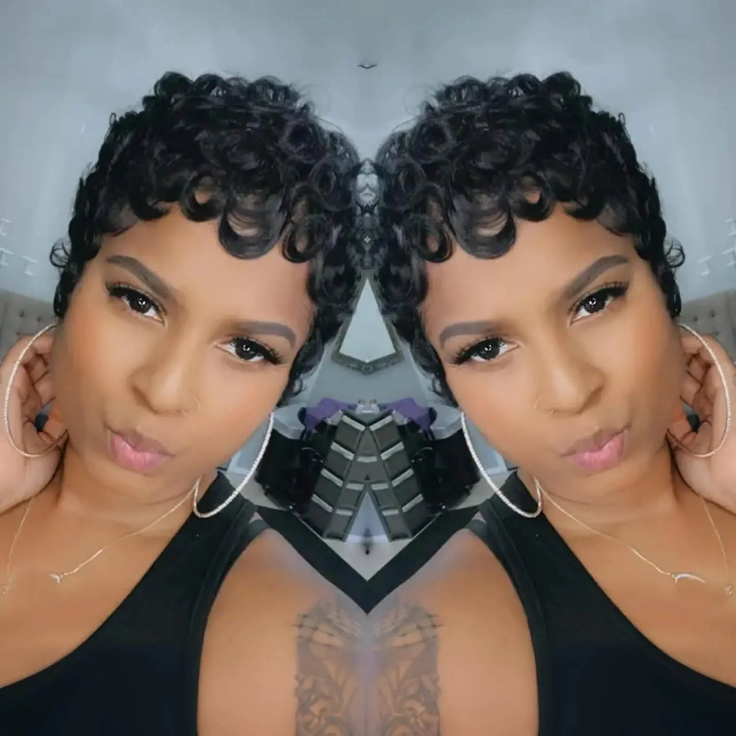 Transform your look effortlessly with our Hair Synthetic Wigs for Black Women. Designed for daily use, this glueless short curly wig with bangs offers a natural appearance and style versatility.