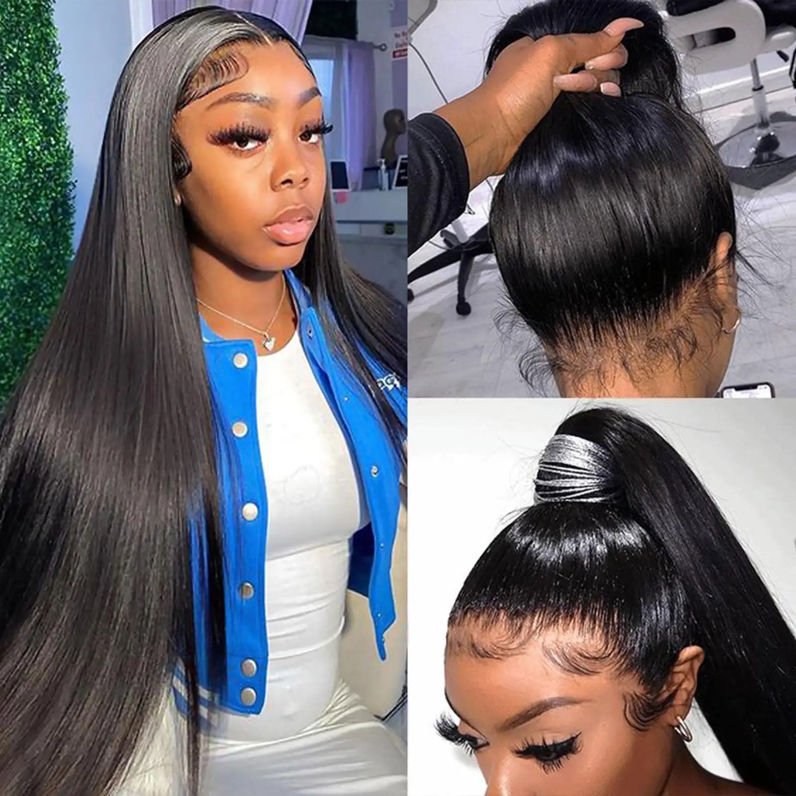 Introducing the Hidden Strap 30 inch Bone Straight 360 Transparent Lace Frontal Human Hair Glueless Wig. Perfect for those seeking effortless elegance and versatility, this ready-to-wear wig combines style with comfort.