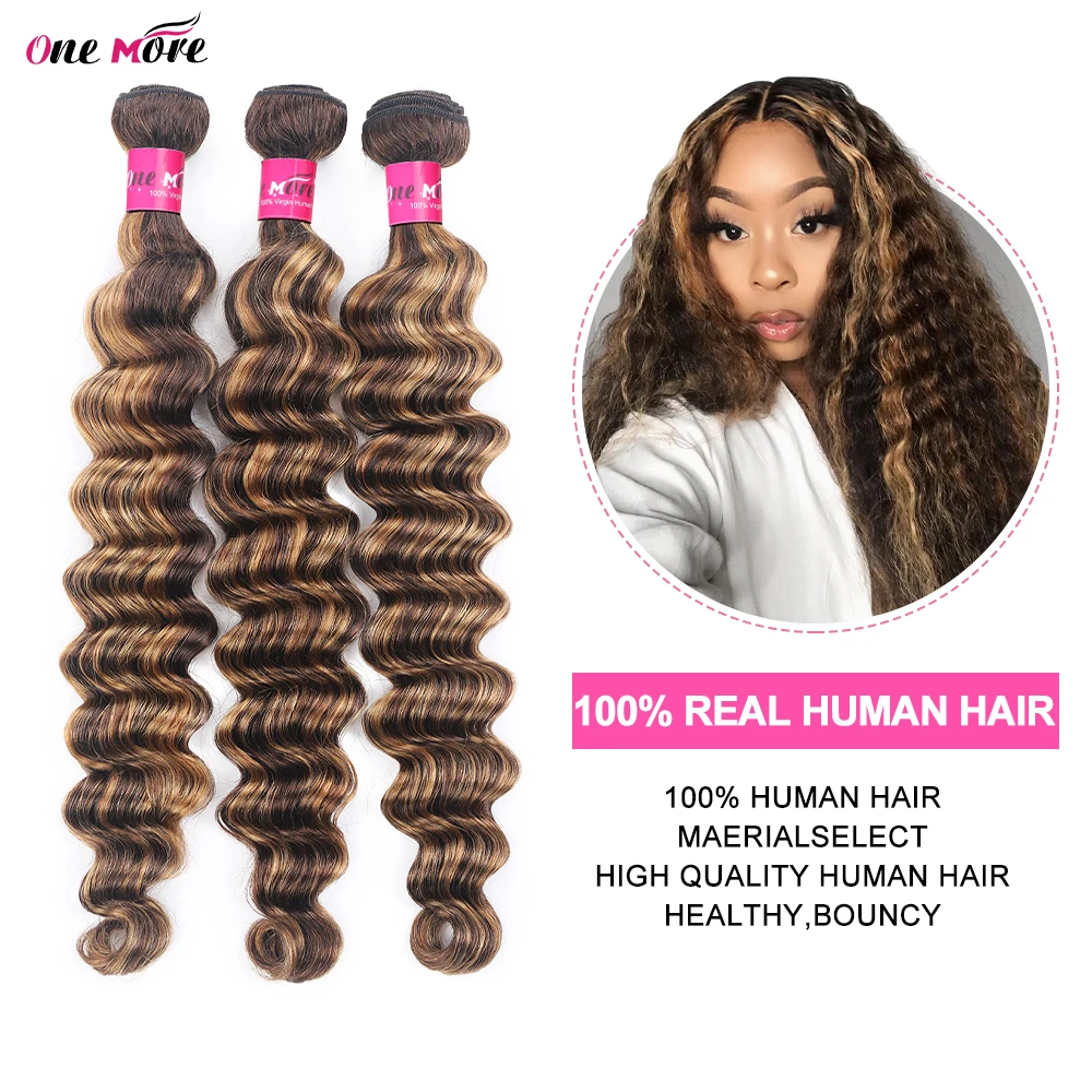 Elevate your style with the Highlight 4/27 Loose Deep Wave Human Hair Bundles With Closure. Perfect for those who want to flaunt gorgeous, voluminous waves with a touch of honey blonde highlights.