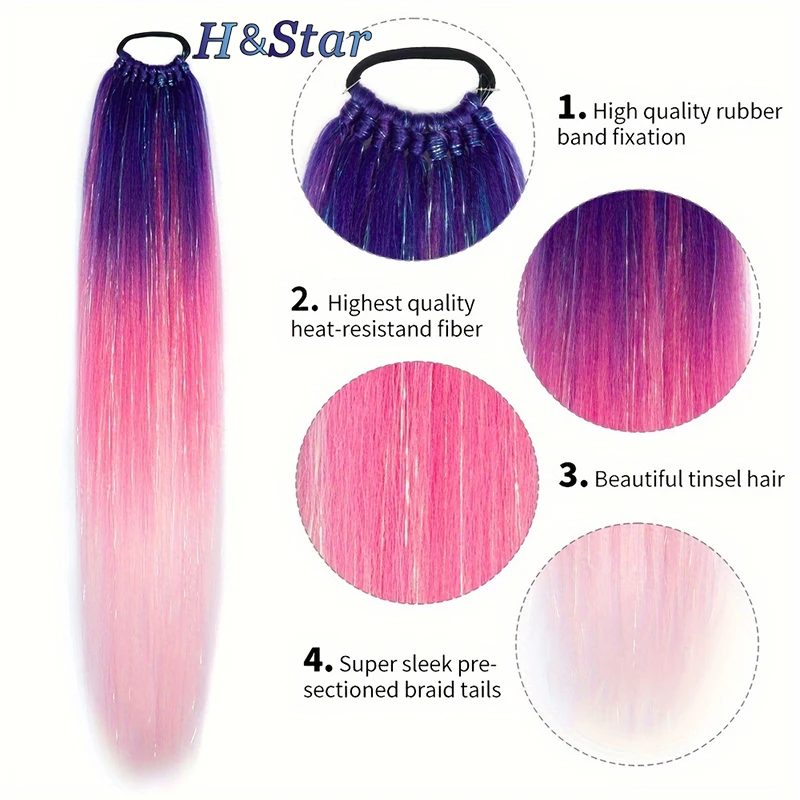 Elevate your hairstyle effortlessly with the H&STAR 24 Inch Synthetic Hair Ponytail Extensions. Designed for versatility, these shiny extensions add length and volume, perfect for any occasion.
