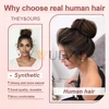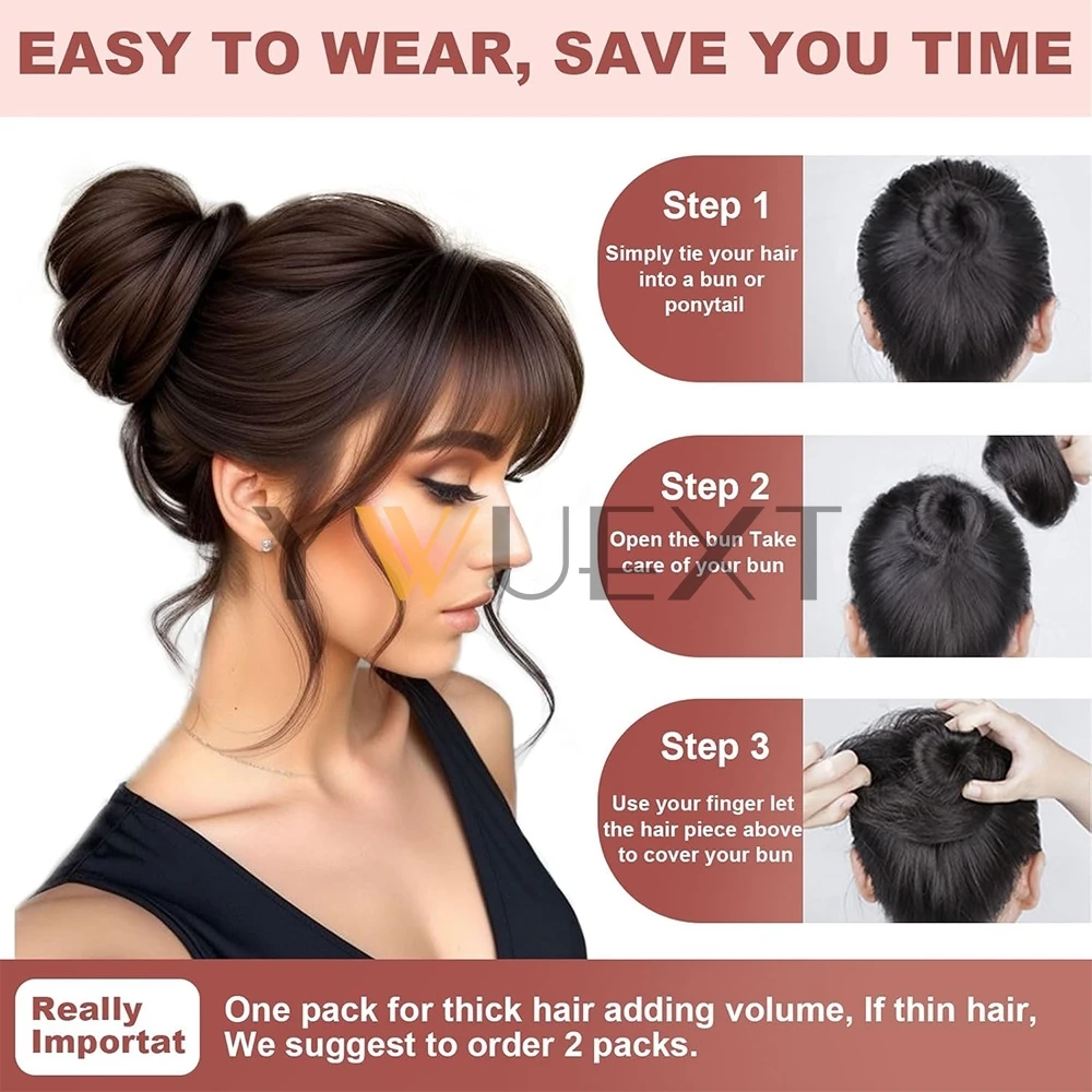 Elevate your hairstyle effortlessly with the Human Hair Buns Ponytail Hairpiece. Perfect for updos, this 100% human hair extension provides a natural look and feel, making it a must-have for any woman seeking versatility and style.