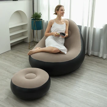 Transform your relaxation experience with the Inflatable Lounge Chair for Adults. This versatile folding portable lazy sofa, complete with a foot stool, is perfect for any living room or bedroom.