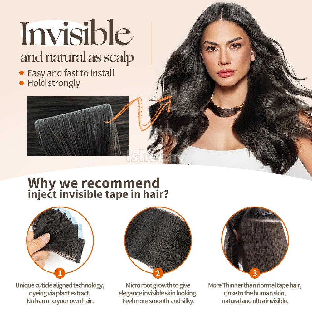 Transform your look effortlessly with Isheeny PU Skin Weft Tape Hair Extensions. These invisible, high-quality human hair extensions provide seamless volume and length for a stunning new hairstyle.