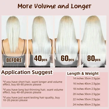 | Long & thin hair want volume | Suggest 40-60 pieces at least |