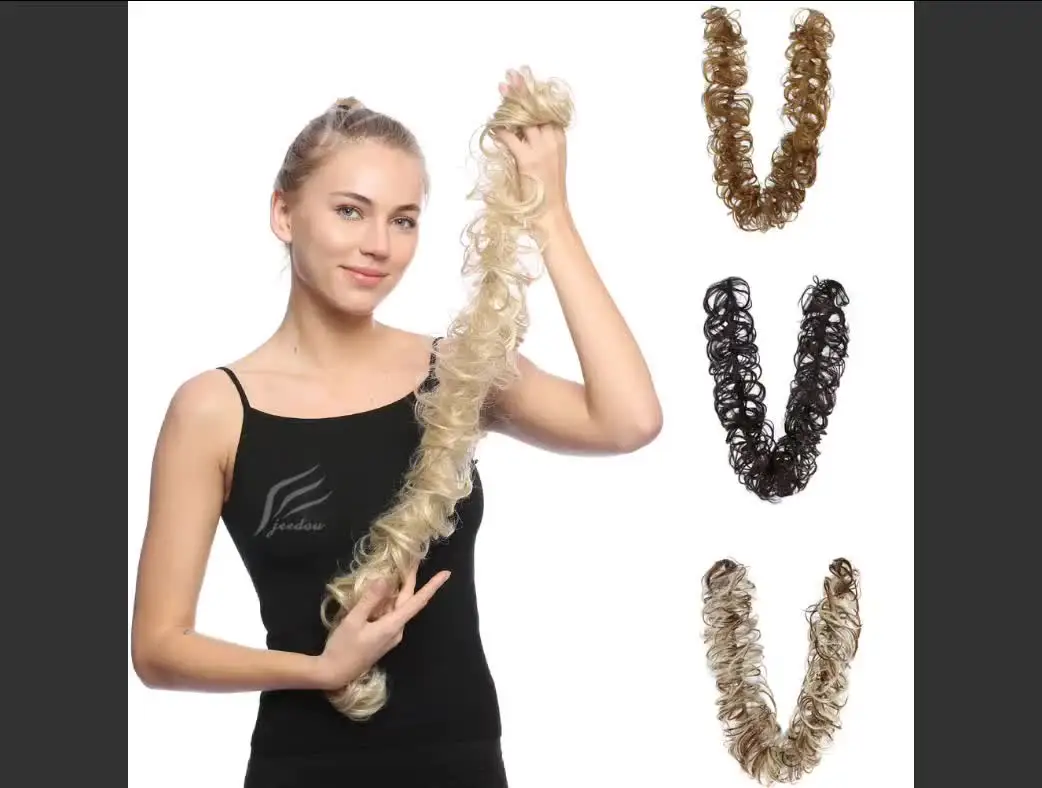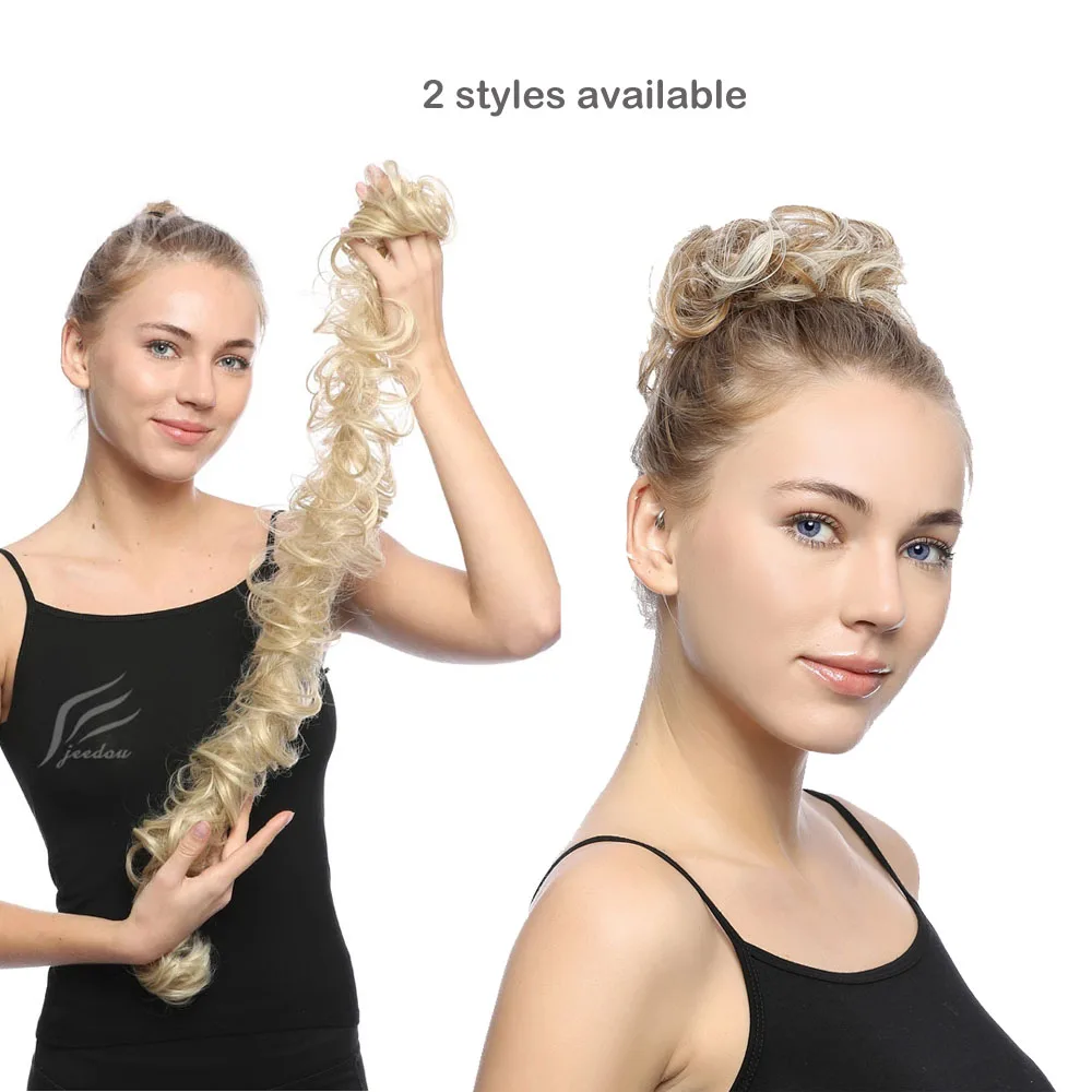 Elevate your hairstyle effortlessly with the Jeedou Long Curly Hair Chignon Messy Bun Synthetic Hair Extension. Designed for women seeking a quick yet stylish transformation, this extension adds length and volume to your bun, making you look charming and elegant.