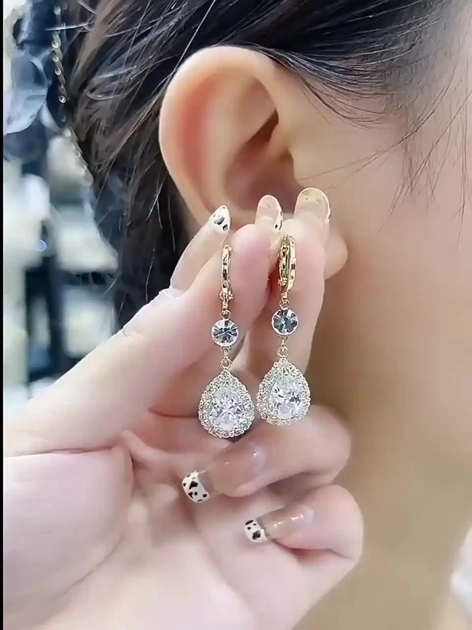 Elevate your style with the Korean Fashion Zircon Water Drop Earrings. These stunning dangle earrings are perfect for adding a touch of elegance to any outfit, making them ideal for weddings, parties, or everyday wear.
