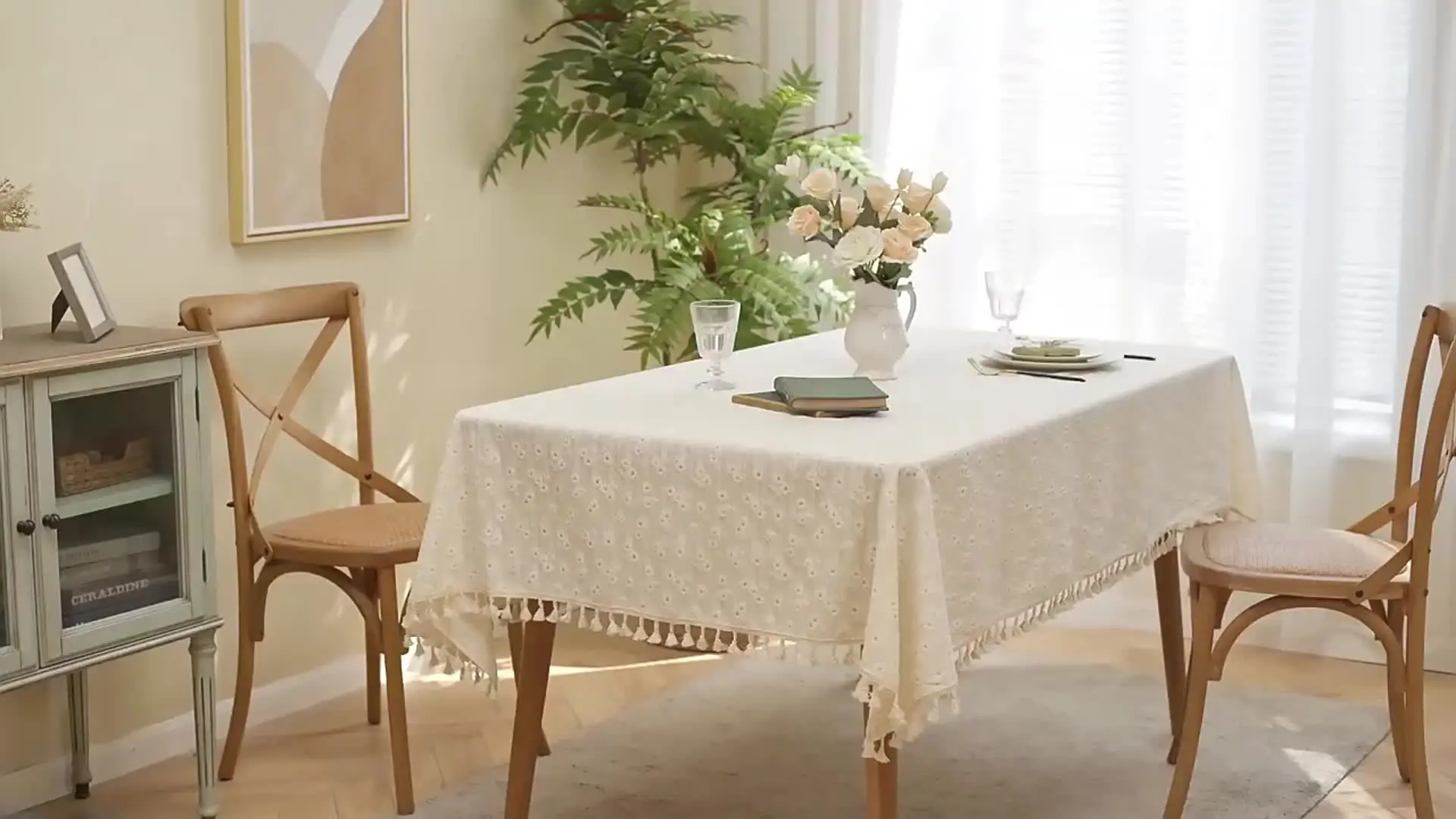 Transform your dining experience with the Korean Style Small Daisy Cotton Floral Tablecloth. Perfect for weddings, tea parties, or a cozy kitchen setting, this rectangle table cover effortlessly adds charm and elegance to any occasion.