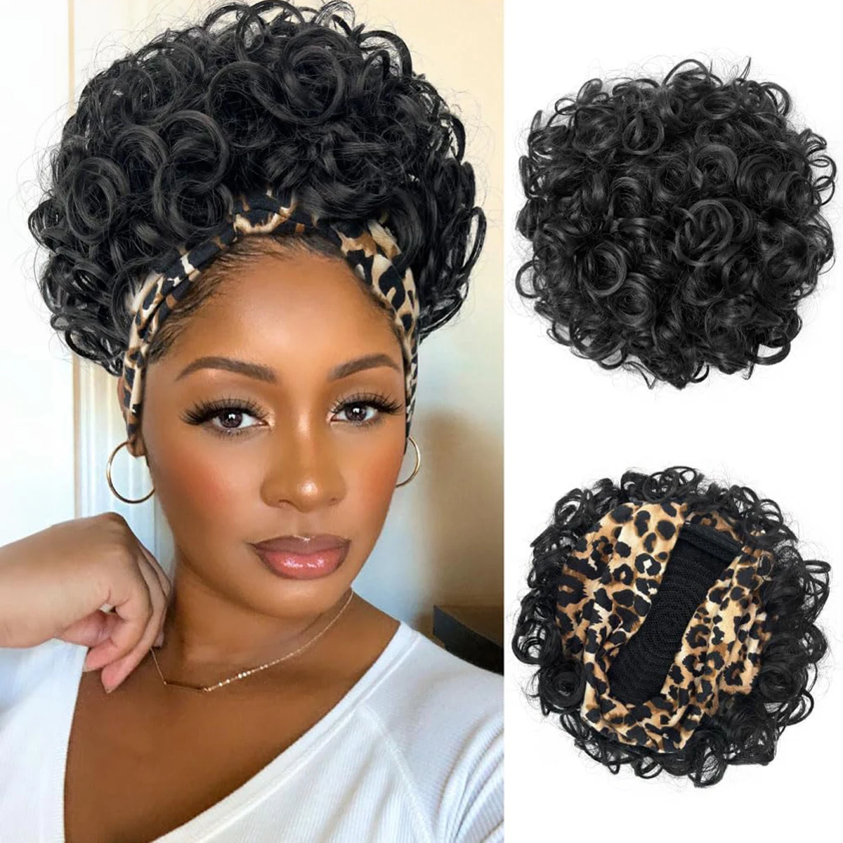Transform your look effortlessly with our Large Curly Wigs with Headbands Attached, designed specifically for Black women. These synthetic short kinky curly wigs combine style and convenience for daily wear.