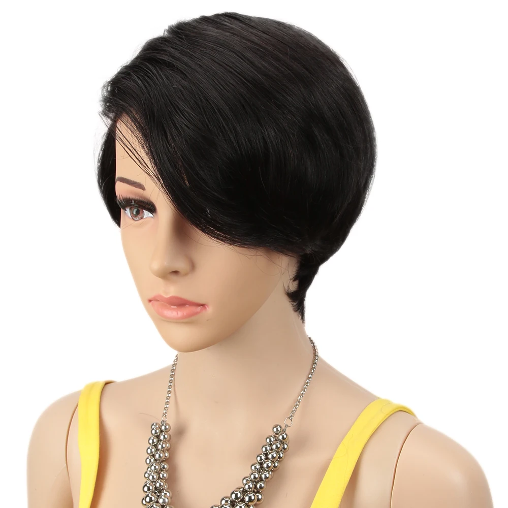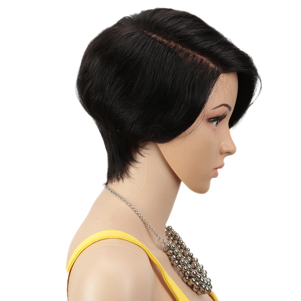 Experience effortless style with the Lekker Black Short Pixie Cut Straight Bob C Part Lace Wig. Crafted from 100% Brazilian Remy hair, this wig offers a natural look and feel for daily wear or special occasions.