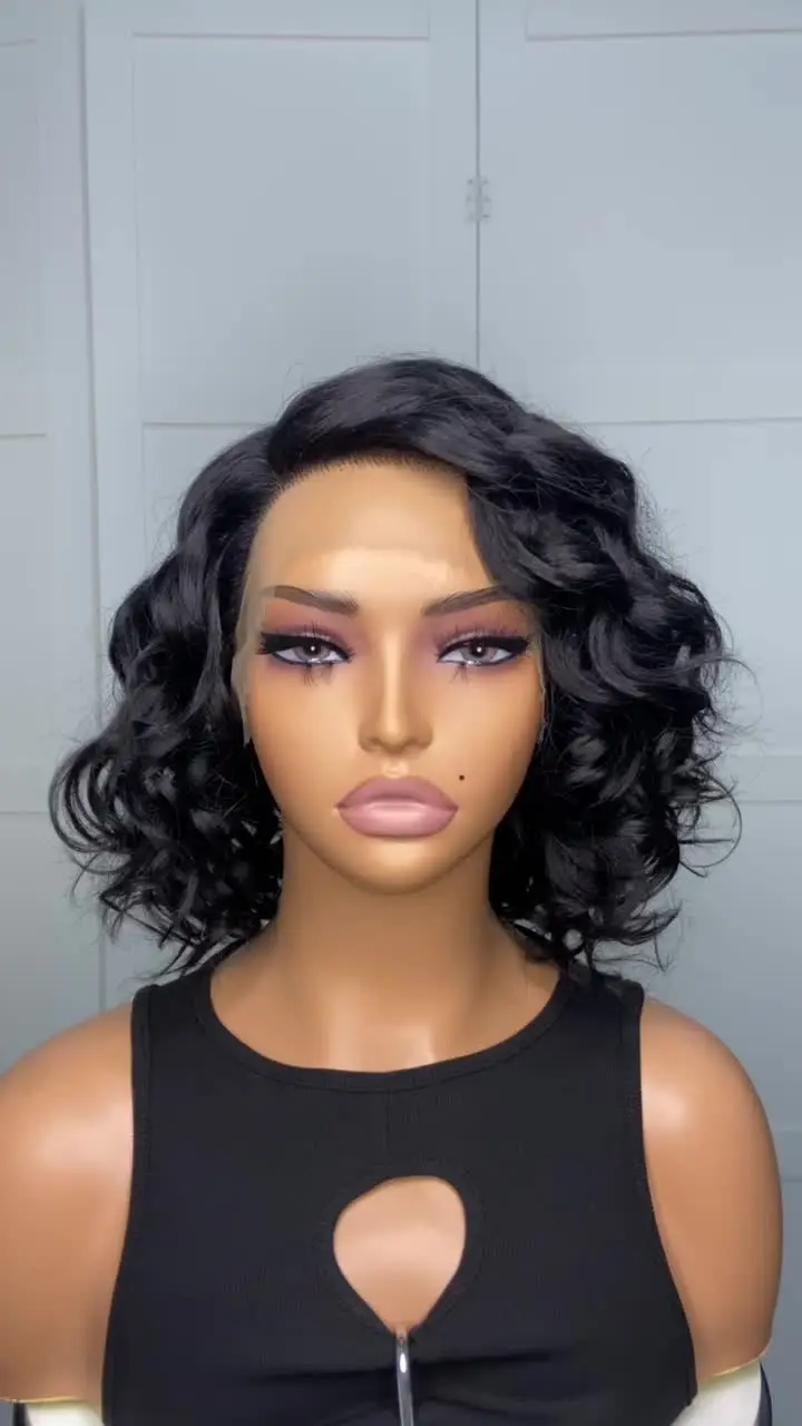 Discover the effortless elegance of the Lekker Black Short Wavy Bob wig, designed for the modern woman who seeks versatility and style without compromise. This stunning 12" lace front wig is perfect for daily wear, office environments, special events, or even cosplay.