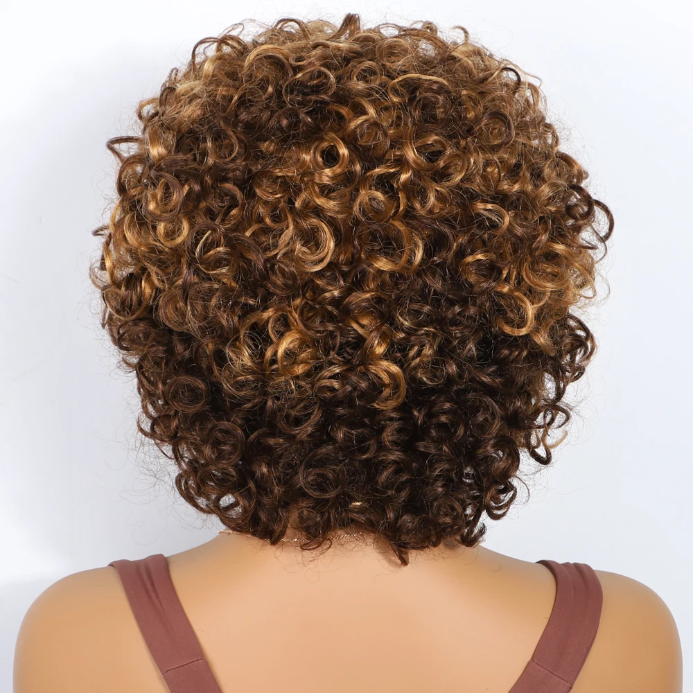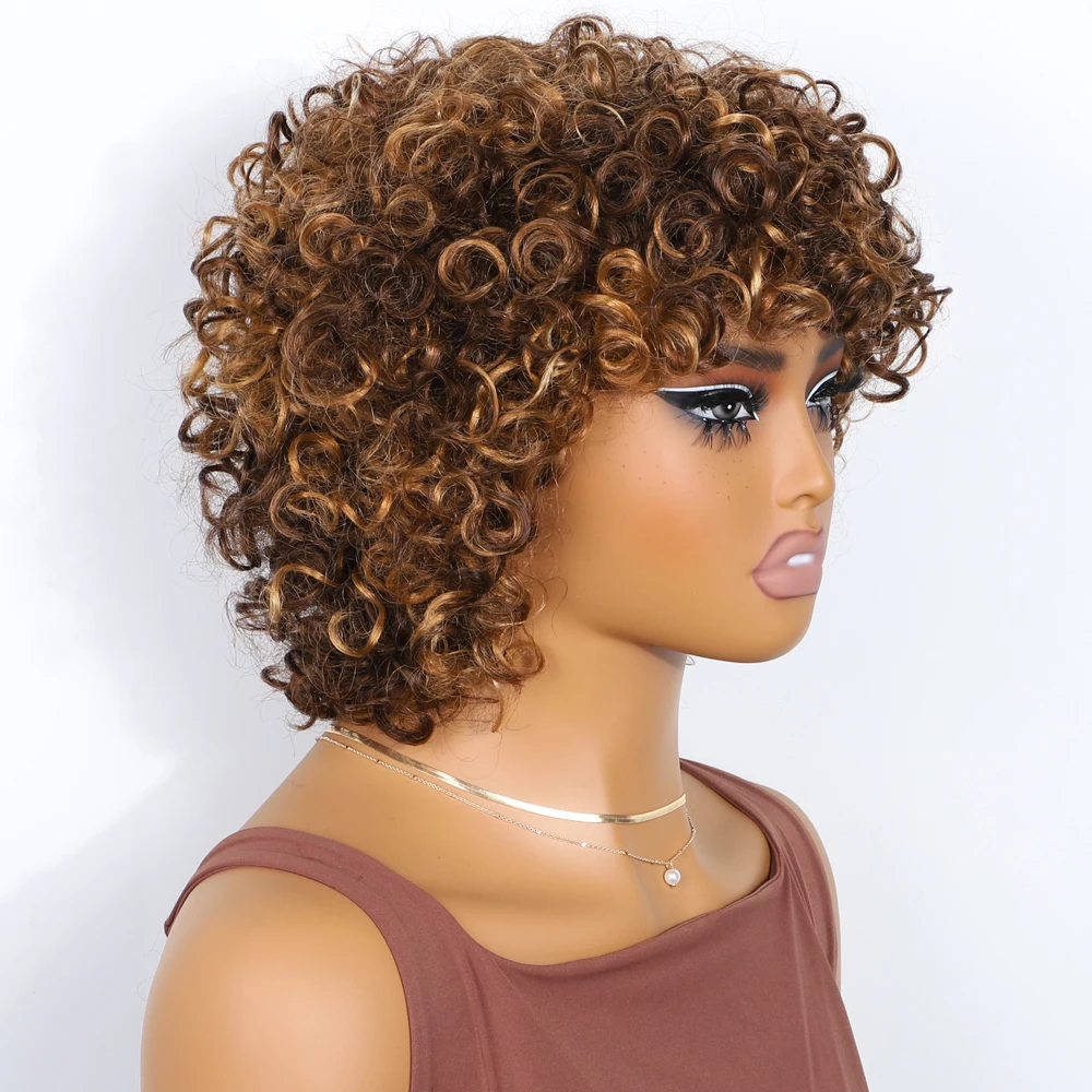 Experience the perfect blend of style and comfort with the Lekker Highlight Brown Short Afro Kinky Curly Bob With Bangs. This 100% human hair wig offers a chic and versatile look, ideal for everyday wear or special occasions.