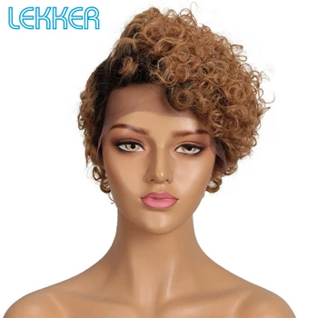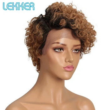 Transform your look effortlessly with the Lekker Ombre Brown Blonde Short Pixie Curly Bob C Part Lace Front Wig. Perfect for any occasion, this glueless Brazilian Remy hair wig offers style and convenience.