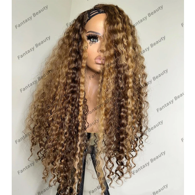 Transform your look effortlessly with the Long 30 Inches Highlight #4/#27 Honey Blonde U Part Wig. This luxurious wig, made from 100% Remy human hair, brings versatility and a natural appearance to your style.