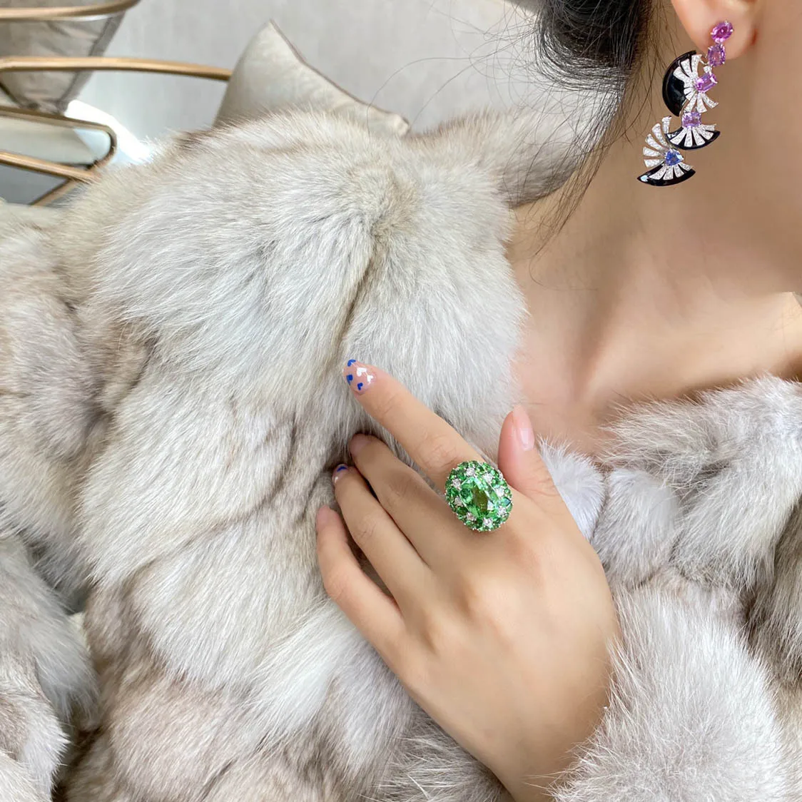 Elevate your elegance with our Luxury 100% 18K White Gold Ring, featuring a stunning created natural emerald gemstone complemented by sparkling diamonds. Perfect for engagements or special occasions, this ring embodies sophistication.