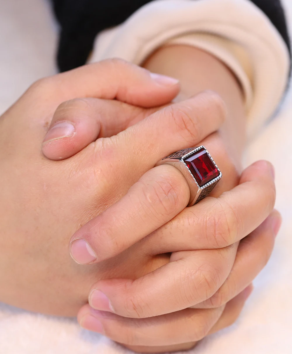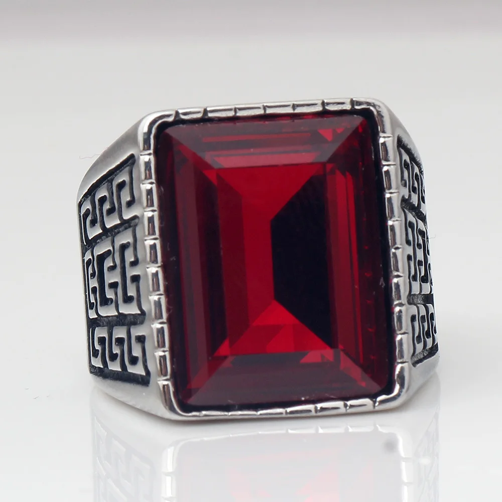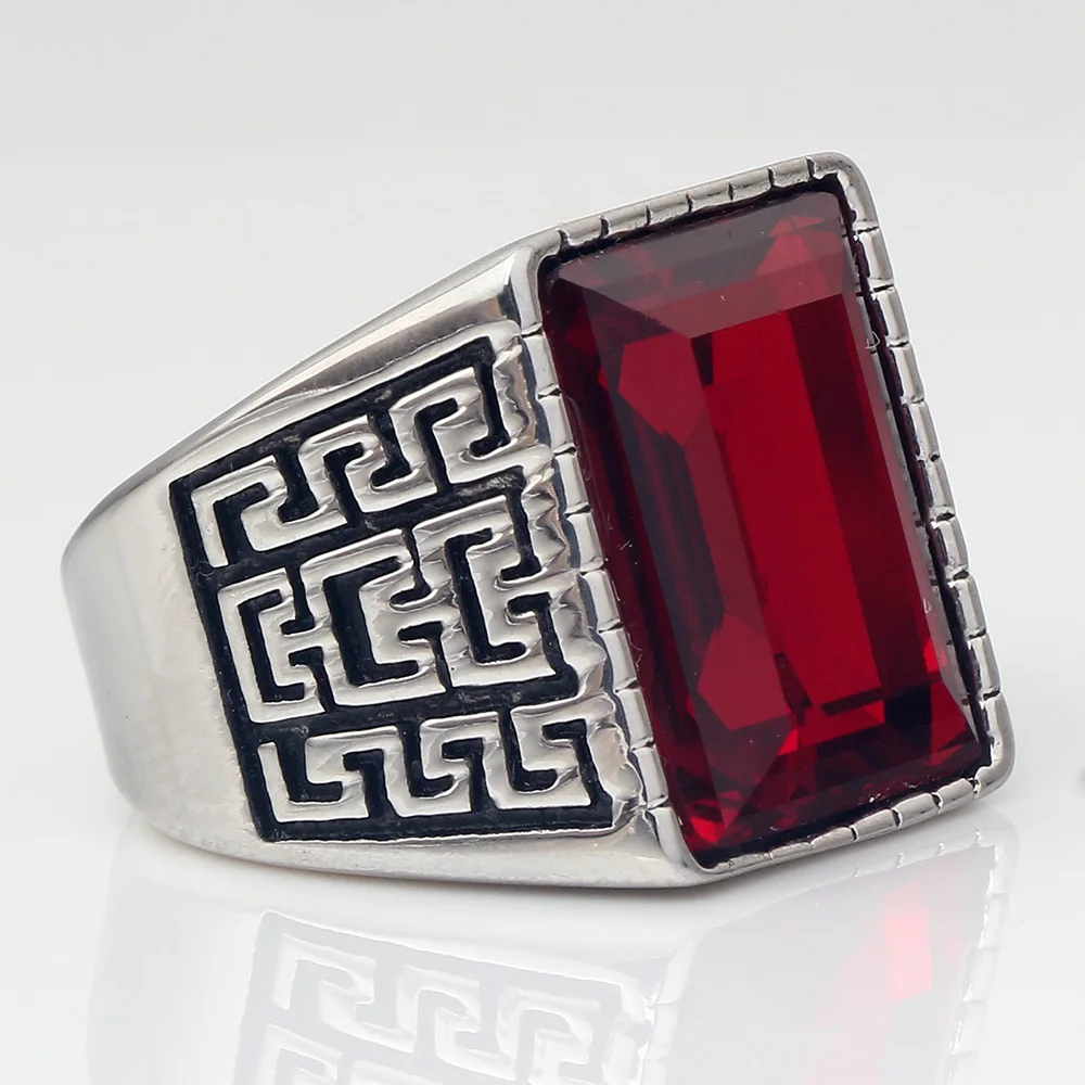 Elevate your style with the Men's Red Blue CZ Stone Gem Ring, a stunning blend of vintage charm and modern sophistication. Perfect for weddings or special occasions, this stainless steel ring is a statement piece for any man.