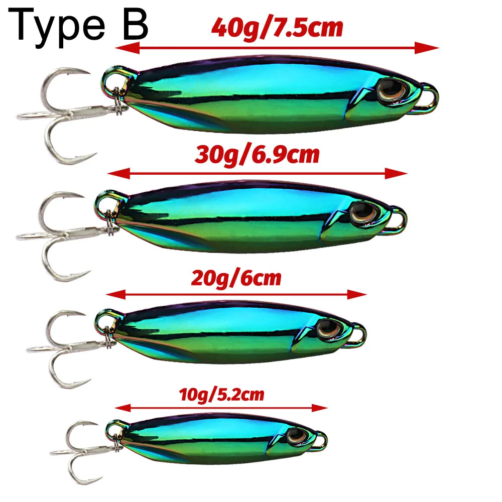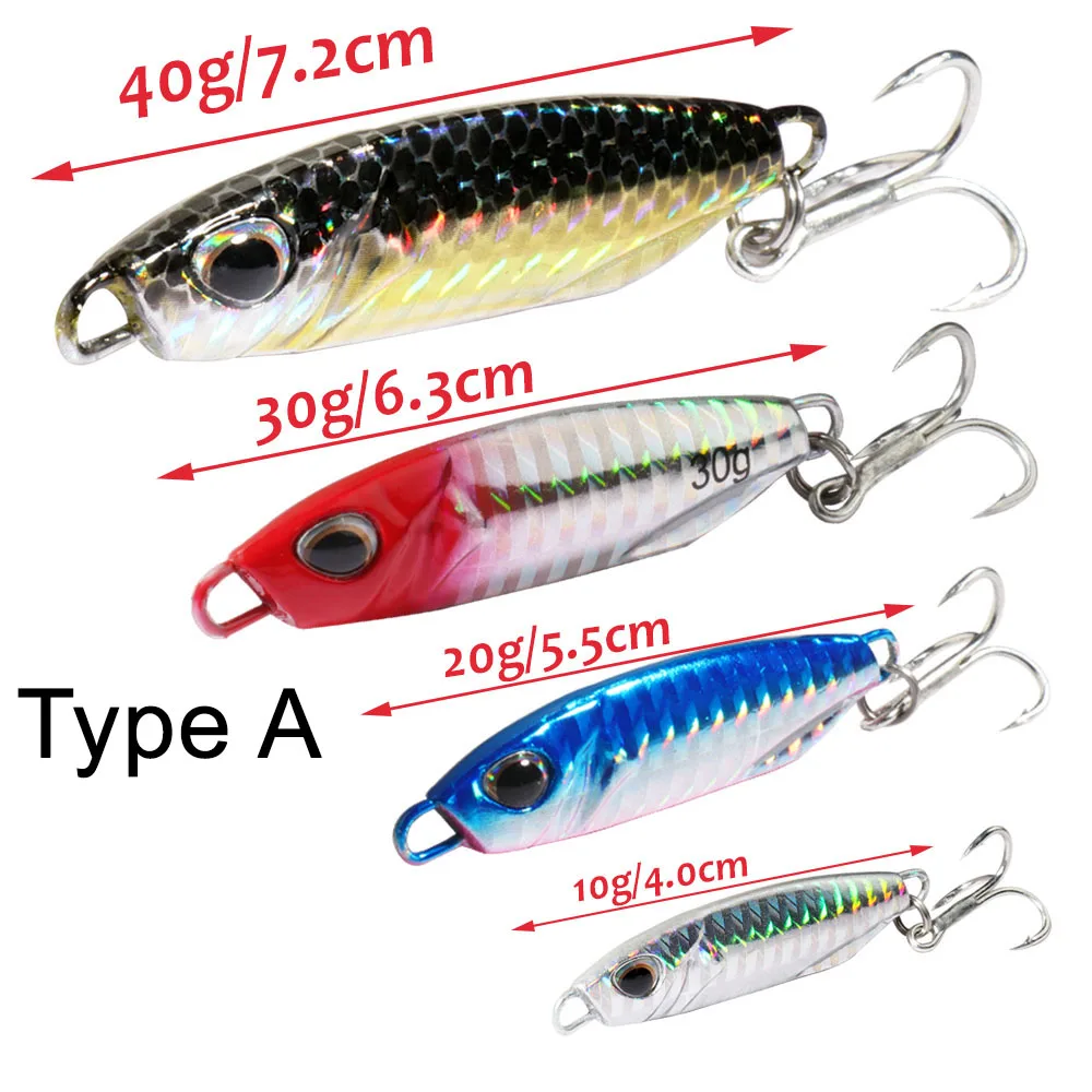 Elevate your fishing game with our Metal Jig Fishing Lure, available in weights of 10g, 20g, 30g, and 40g. Ideal for both lake and ocean fishing, this lure is designed to attract a wide variety of fish with ease.