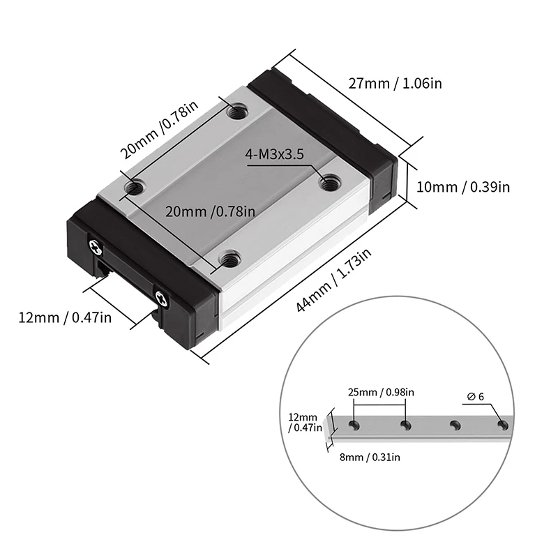| Guide Width or Diameter | MGN7 MGN12 MGN15 MGN9 |
