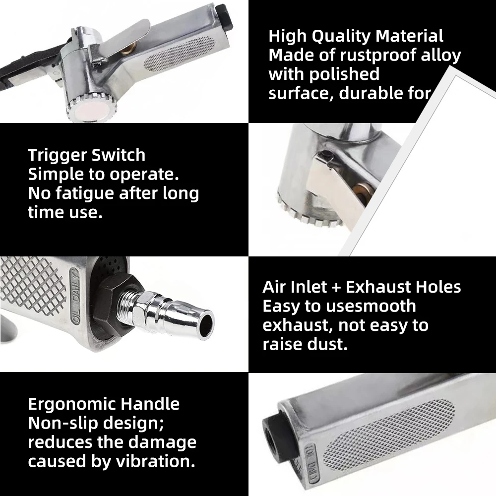 Elevate your woodworking and metalworking tasks with the Mini Air Belt Sander. This handheld pneumatic tool combines power and precision, making sanding a breeze.