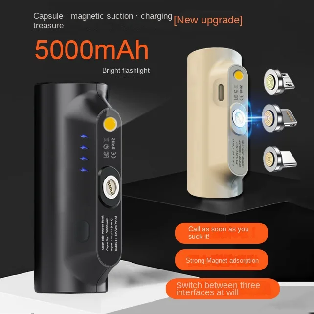 Stay powered up on-the-go with the Mini Powerbank 5000 mAh Portable Charger. This versatile device not only charges your phone but also features a powerful flashlight, making it an essential companion for outdoor adventures or emergencies.