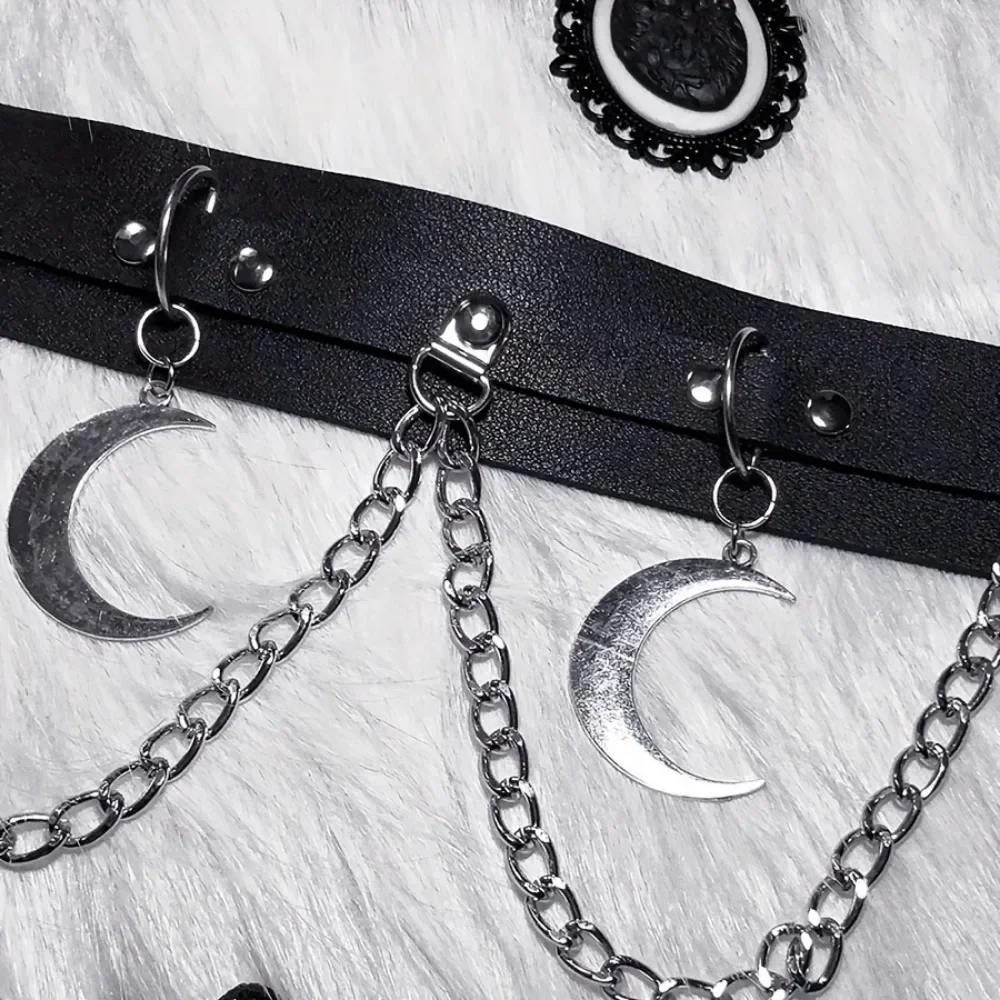 Elevate your style with the Moon Pendant Chain Fringe Goth Belt, a striking accessory that embodies punk aesthetics. Perfect for adding an edge to any outfit, this belt combines vintage vibes with modern flair.