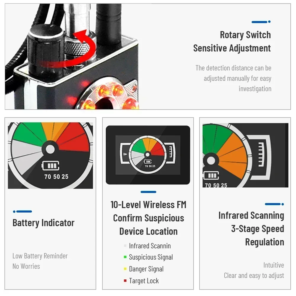 Ideal for business professionals, travelers, and anyone concerned about privacy, this detector is a must-have. Stay safe and informed wherever you are!