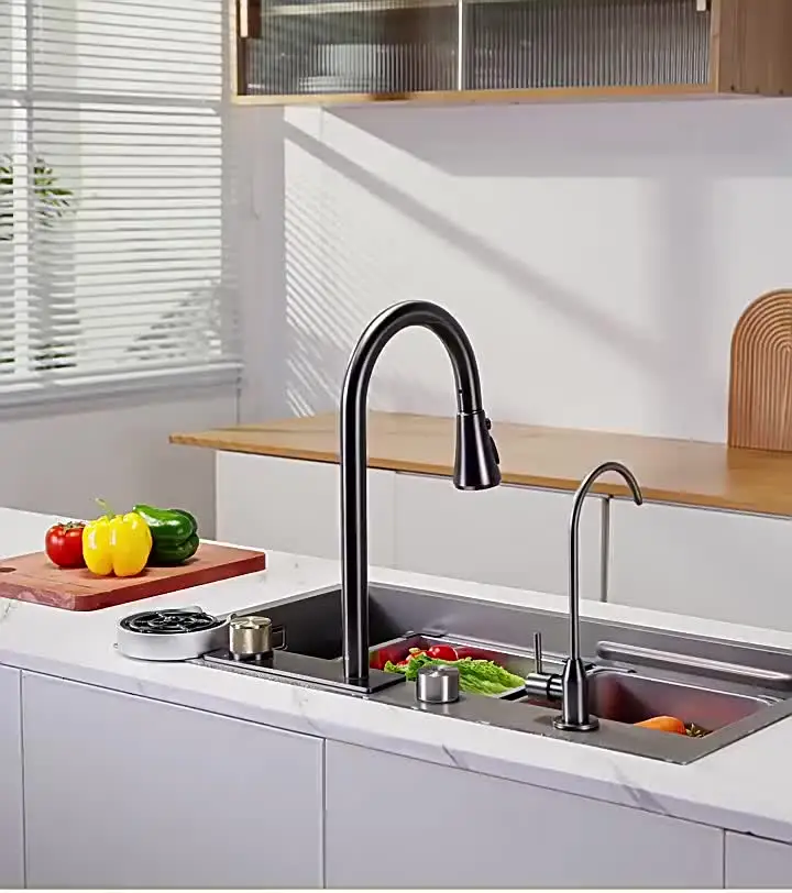 Transform your kitchen with the Multifunction Black Nano Kitchen Sink Waterfall Faucet. This innovative sink combines style and practicality, making it an essential addition to any modern home.