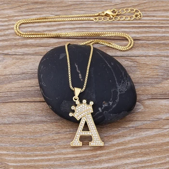 Elevate your style with the Nidin New Luxury Copper Zircon A-Z Crown Alphabet Pendant Chain Necklace. Designed for both men and women, this trendy piece is perfect for expressing individuality through initials.