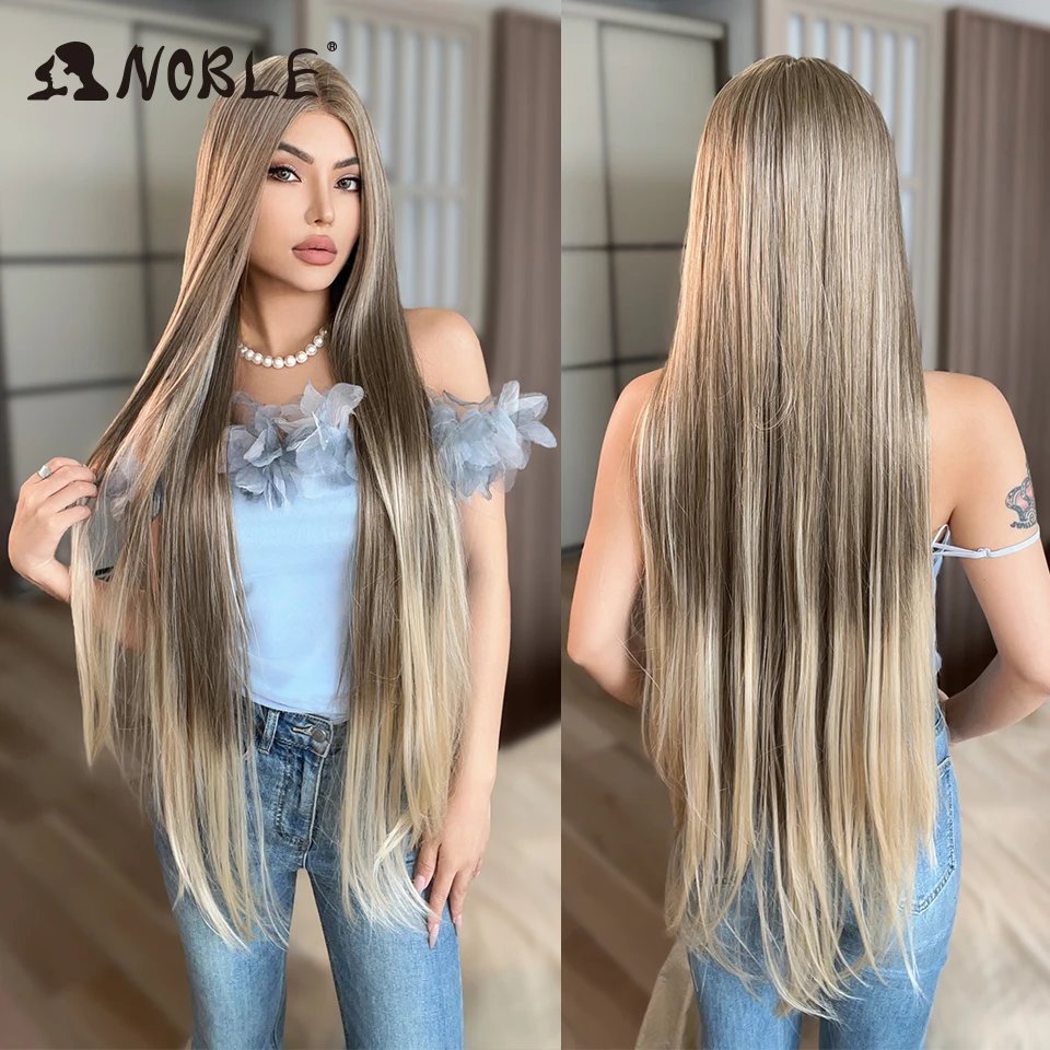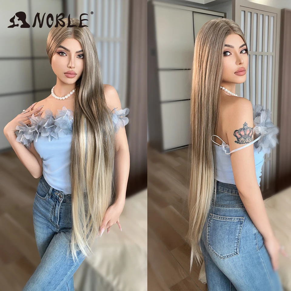 Transform your look with the Noble Synthetic Lace Front Wig, a stunning 38-inch ombre blonde masterpiece. Perfect for cosplay or everyday wear, this wig combines elegance and comfort.