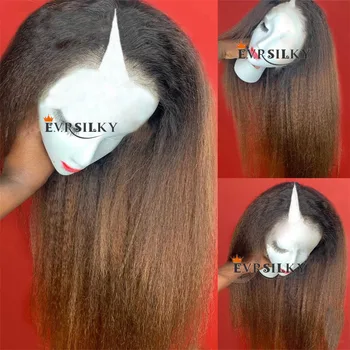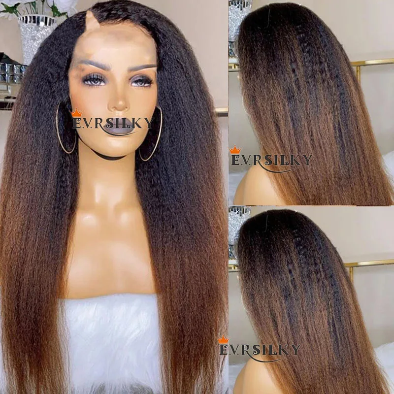 Introducing the Ombre Chestnut Brown Kinky Straight V Part Wig, your ultimate accessory for effortless elegance. Crafted from 100% unprocessed Brazilian human hair, this wig combines style and versatility for any occasion.