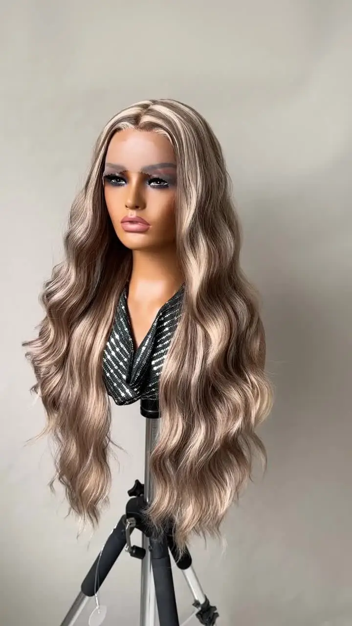 Transform your look effortlessly with the Ombre Chocolate Brown Deep Part Wavy Synthetic Lace Wig. This stunning 28-inch wig is designed for style and comfort, perfect for any occasion.