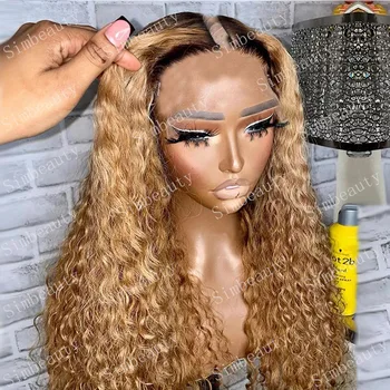 Elevate your style with the Ombre Honey Blonde Bouncy Curly V Part Wig, designed for versatility and comfort. This premium 100% human hair wig offers a stunning golden brown hue that seamlessly blends with your natural hair.