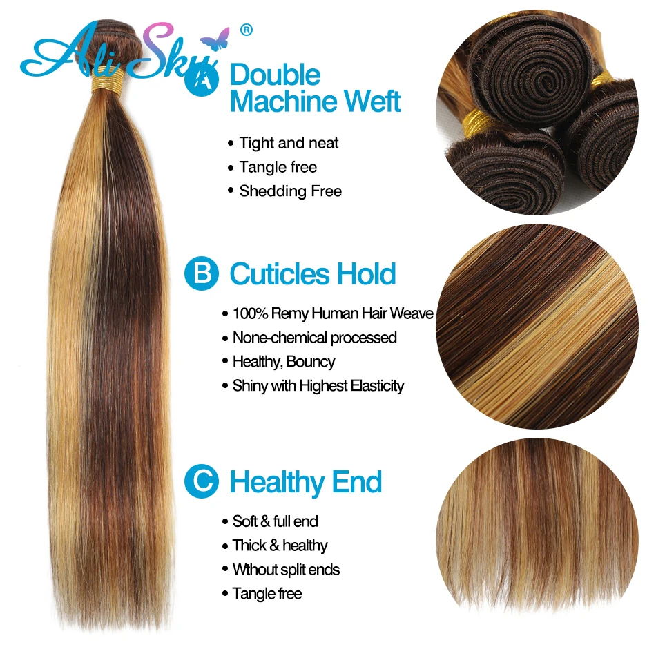 Elevate your style with the P4 27 Highlight Straight 3/4 Bundles and Lace Closure. This luxurious set combines quality and versatility, perfect for creating stunning hairstyles that turn heads.