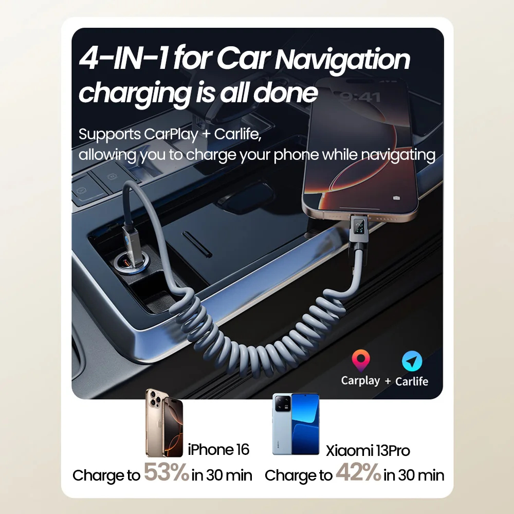 Experience lightning-fast charging and seamless data transmission in one compact design. Perfect for on-the-go use, this cable is a must-have for tech enthusiasts. Enjoy compatibility with the latest Apple and Samsung models while supporting Car Play and Car Life features.
