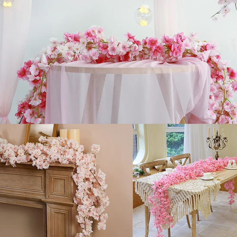 Transform your space with the stunning Pink Sakura Artificial Flowers Garland, perfect for weddings, parties, or home decor. These lifelike cherry blossom vines add a touch of elegance and charm to any setting.