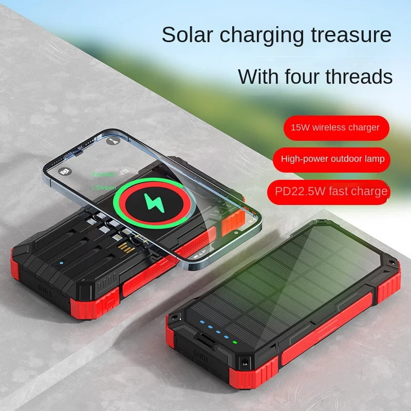 Stay charged and connected with the Power Bank 26800 mAh! This versatile solar charger not only powers your devices but also features a powerful flashlight, making it perfect for outdoor adventures.