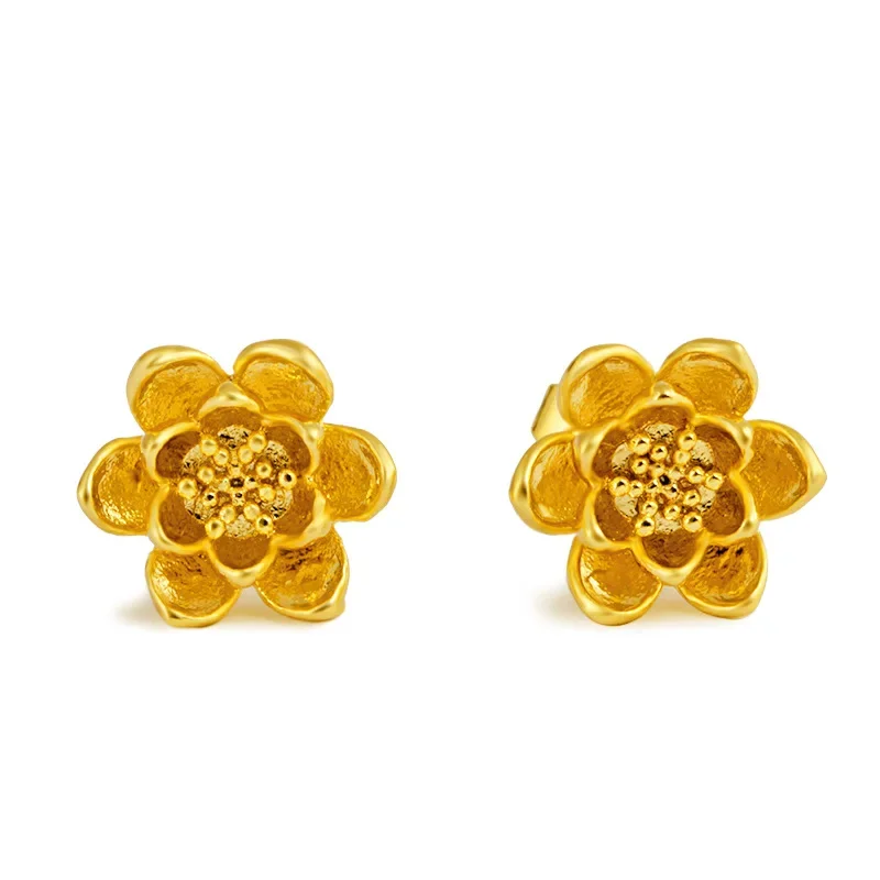 Elevate your jewelry collection with the stunning Pure 14 K Dubai Gold Fried Dough Lotus Flower Earrings. Perfect for any special occasion, these earrings are designed to impress and delight.