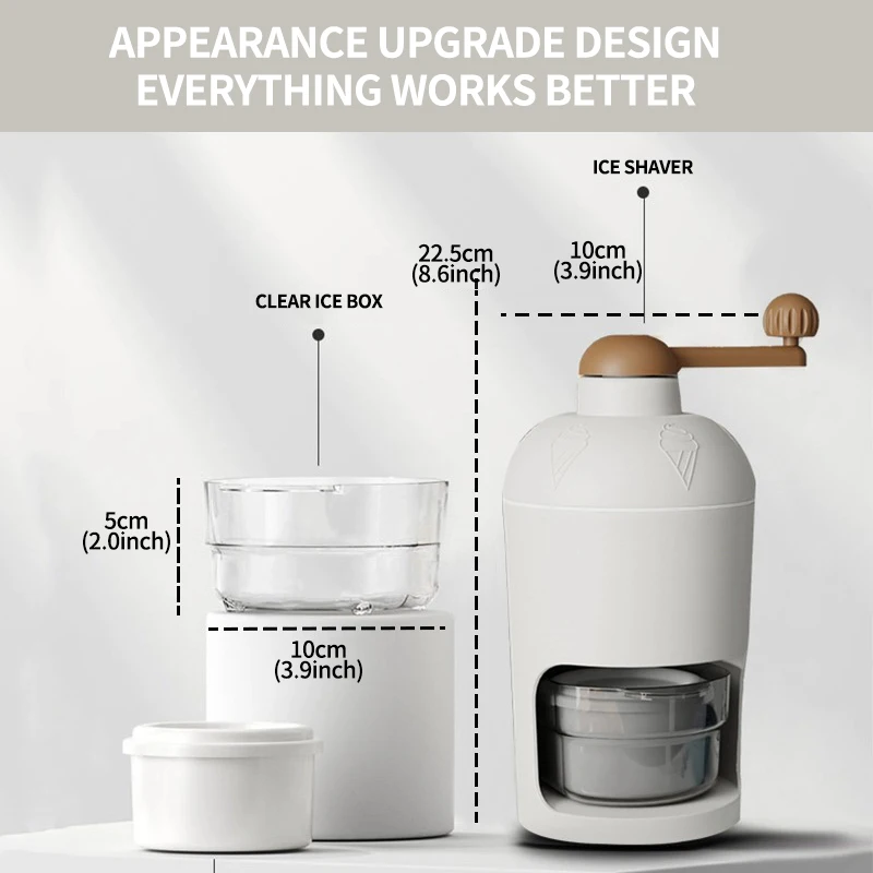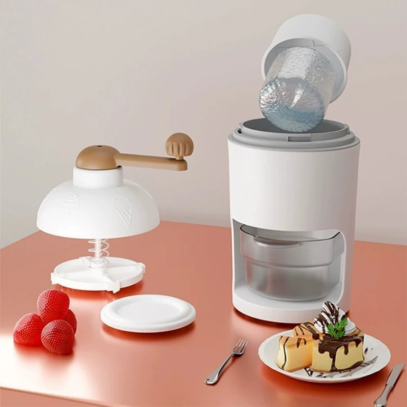 Introducing the Mini Ice Crusher Shaved Ice Machine, your ultimate kitchen companion for creating delicious frozen treats at home. This portable, hand-operated tool makes perfect shaved ice for milkshakes, slushies, and more!