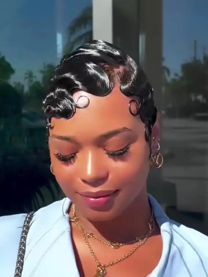 Discover the elegance of the Short Black 99 j Bob Pixie Cut Lace Front Human Hair Wig, designed for those who crave a chic and sophisticated look. This wig offers a stunning finger wave texture for a natural appearance.