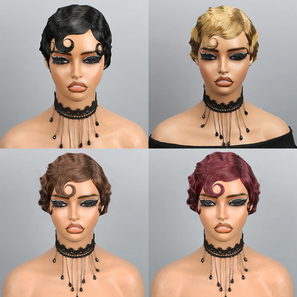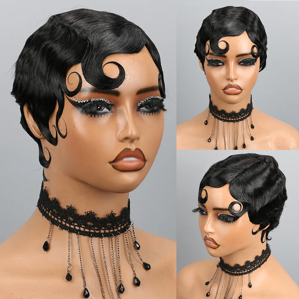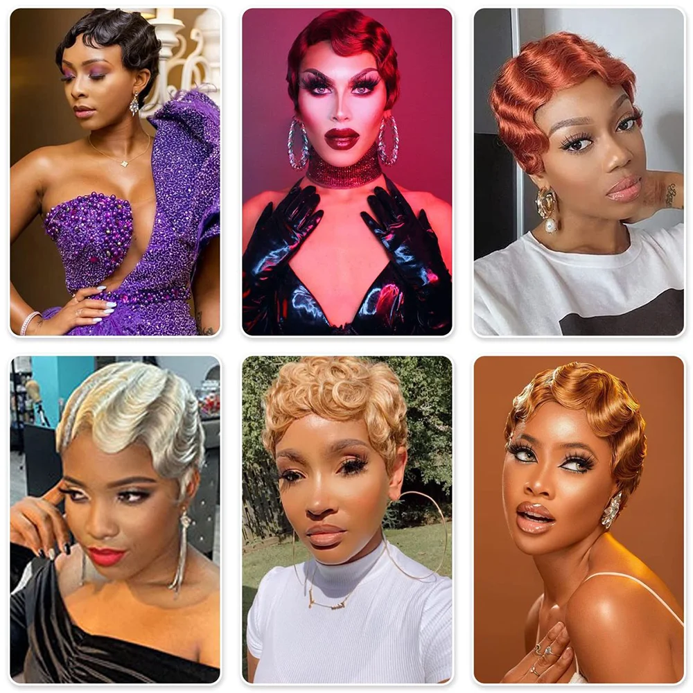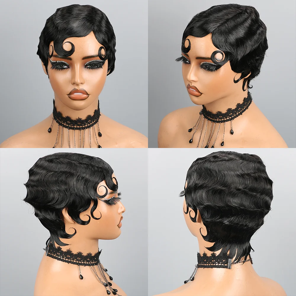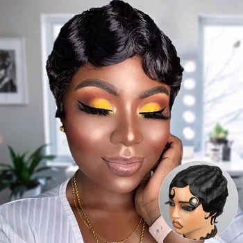 Elevate your style with the Short Pixie Cut Wigs Human Hair Finger Ocean Wave Wig designed specifically for Black women. This full machine-made wig combines elegance with versatility, allowing you to transform your look effortlessly.