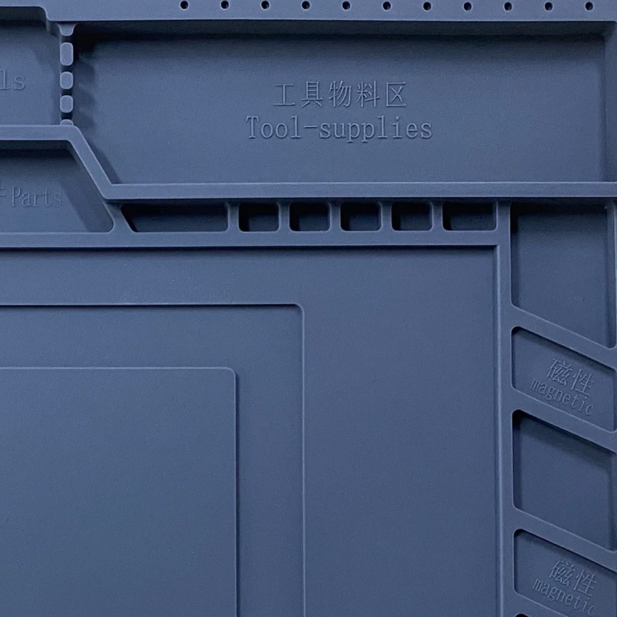 Enhance your repair experience with this versatile mat that keeps all your tools in place while protecting your surfaces. Ideal for soldering, it provides a safe and convenient workspace. Crafted from durable silicone, it withstands high temperatures and everyday wear.